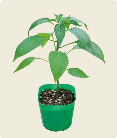 苗が根鉢を形成して培土をしっかり抱え込んでいるため、プラグトレーから苗が抜けやすく移植作業が簡単です。移植時の植え痛みも少なく、初期生育が順調です。出荷前に丁寧に挿し替え作業を行い、生育、品質が均一に揃った苗をお届けいたします。