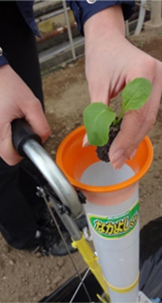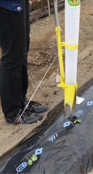 • ③ハンドルを握りながら持ち上げれば植え付け完了です。